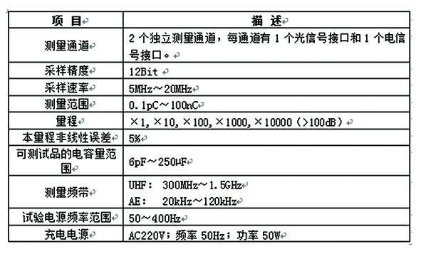 具有雙通道內(nèi)置式光電雙輸入接口,上端口出線方式。該儀器內(nèi)置鋰電池(也可外接電源連續(xù)工作),具有多種局放分析