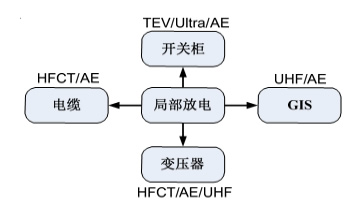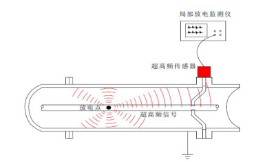 測(cè)量電力設(shè)備局部放電常見(jiàn)的傳感原理 1特高頻監(jiān)測(cè)原理 特高頻模式:GIS中的局部放電屬于絕緣氣體電氣擊穿,SF6氣體的擊穿導(dǎo)致導(dǎo)體中流過(guò)一個(gè)短時(shí)(ns級(jí))的電流。電流流過(guò)GIS的特征阻抗,在導(dǎo)體上產(chǎn)生一個(gè)脈沖電壓,從局放源傳播開(kāi)來(lái)。由于局放信號(hào)的上升時(shí)間很短(<1ns)、頻帶很寬(>1GHz),傳播過(guò)程中在GIS腔體內(nèi)引起電諧振,激發(fā)電磁波,通過(guò)安裝在盆式絕緣子上的特高頻傳感器接收電磁波信號(hào)進(jìn)行監(jiān)測(cè)。