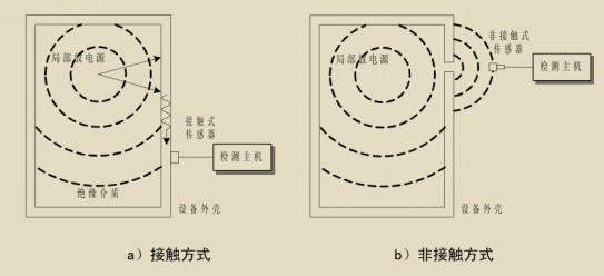 3超聲波法檢測(cè)原理 高壓電氣設(shè)備發(fā)生局部放電時(shí),產(chǎn)生超聲波信號(hào)向外輻射,放電產(chǎn)生的聲波的頻譜很寬,可以從幾十Hz 到幾MHz,其中頻率低于20 kHz 的信號(hào)能夠被人耳聽(tīng)到,而高于這一頻率的超聲波信號(hào)必須用超聲波傳感器才能接收到, 電力設(shè)備絕緣內(nèi)部發(fā)生局部放電時(shí),同時(shí)伴隨產(chǎn)生超聲波信號(hào)。超聲波信號(hào)由局部放電源沿著絕緣介質(zhì)和金屬件傳導(dǎo)到電力設(shè)備外殼,并通過(guò)介質(zhì)和縫隙向周?chē)諝鈧鞑。通過(guò)在電力設(shè)備外殼或設(shè)備附近安裝的超聲波傳感器,可以耦合到局部放電產(chǎn)生的超聲波信號(hào),進(jìn)而判斷電力設(shè)備的局部放電情況,非接觸方式主要用于開(kāi)關(guān)柜 、電力電纜等電力設(shè)備的檢測(cè)。